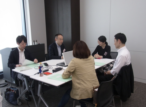 多摩川食品チーム12名の受講生には、それぞれ個別の役割・ミッションと情報が設定されているので、まずは与えられた個別の資料を読み込むことから始まる。自分自身の戦略目標と組織の戦略目標を設定しながら、それを達成するための戦術を検討していく。