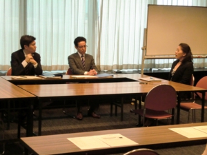 先発明主義派、先願主義派に分かれてディベートを行う。