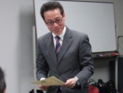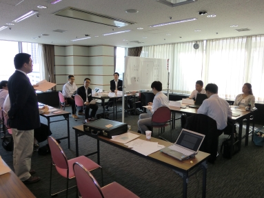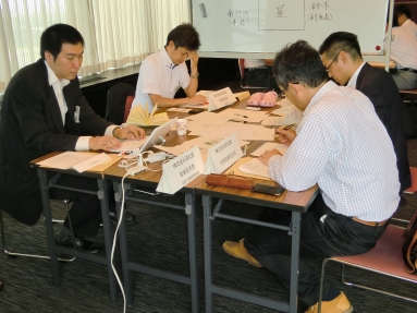 塾長から「中島塾」のルール説明。くじ引きで割り振られた役割でシミュレーション開始。