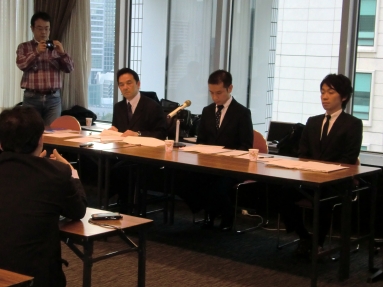 チェリーアセット側の記者会見。なにわ鉄鋼と合併の再交渉が現実的に可能なのか、など厳しい質問が続く。