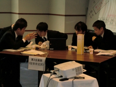 これまでのディベート演習では審判団を軽視する傾向があったため、今回は商標権侵害なしとして製品化を進める第一企画部と、問題ありとして製品化に反対する第二企画部の論争を、社長をはじめとする経営陣が聞いて判定するというケーススタディとして設定。