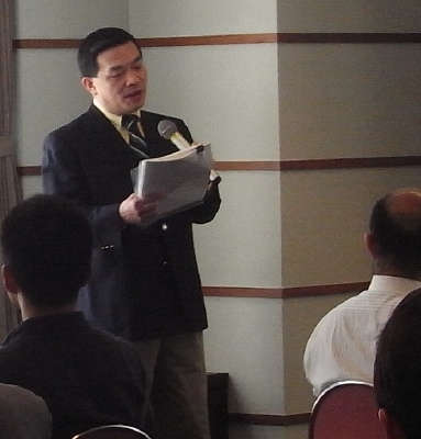 議長から指名され議案の内容説明を行う、少数株主であるチェリーアセット社代表。