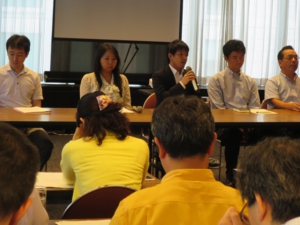 両派ともディベートに際しては、職務発明をした従業員のインセンティヴ、企業と従業員との調整方法、調整についての政府の関与など、派生論点ごとに分担して論及するようにし、全員がプレゼンテーションを行うこと。