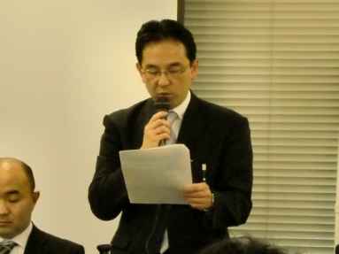 議長から指名され議案の内容説明を行う、少数株主であるチェリーアセット社代表。